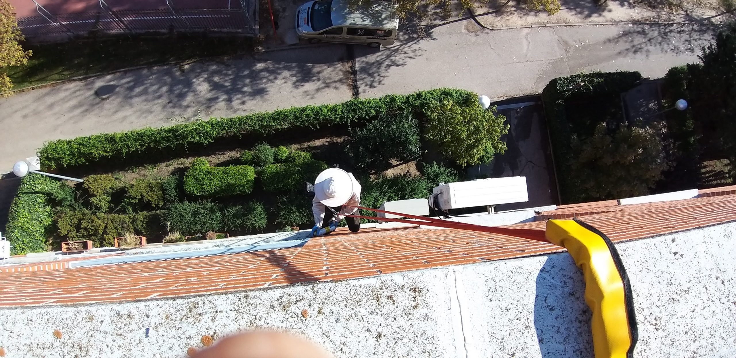 Para realizar los tratamientos de control de aves, nuestros técnicos se han formado en altura, con sus correspondientes titulaciones para así poder realizar los trabajos en tejados, canalones, cornisas, alfeizar, etc..